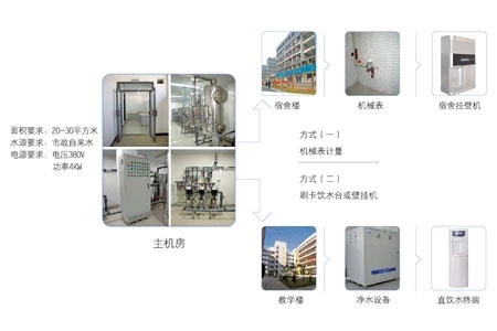 校园直饮水设计方案一:中央净水设备+饮水终端